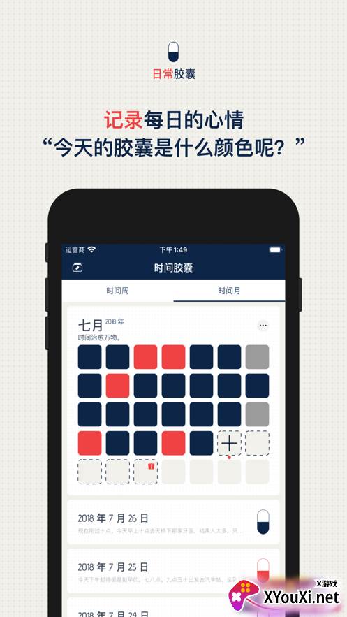 – 「日常胶囊」:一日一记,用不同色彩的胶囊,描绘每日的心情变幻。