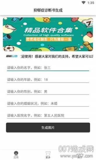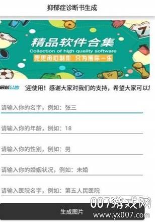 只需要在应用中填入姓名、性别、年龄、婚姻状况以及指定医院,然后点一下“生成”按钮,一份“诊断书”就大功告成啦!它还会自动保存到你的手机相册,方便你随时分享(或“炫耀”)这份“成果”。