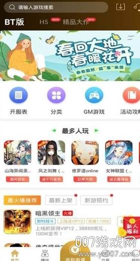 1. BT手游,福利爆棚:海量BT手游,无限元宝钻石,上线即送满级VIP!更有超高比例充值,官方BT服,充值比例高达1:500,助你轻松升级,快速通关,体验前所未有的BT手游快感!