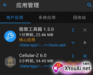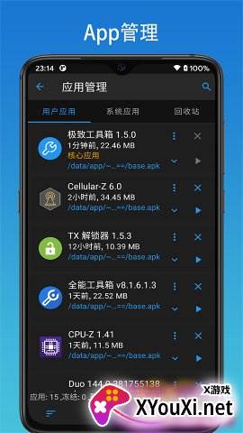 • 清晰区分用户应用、系统应用及回收站内的应用。