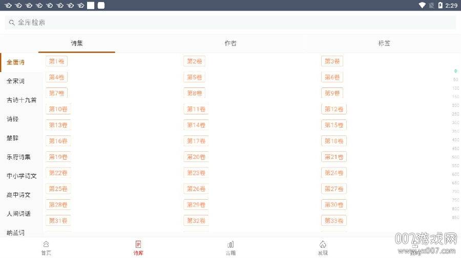 进入软件首页,即可畅游于浩瀚的唐诗海洋。你可以不仅可以阅读诗词原文,还能随心所欲地进行朗读。遇到晦涩难懂的词句?别担心,详尽的注释会为你一一解读,助你轻松理解诗词的深层含义。更有全文赏析,将文言文化为白话文,让你快速掌握诗词的精髓。
