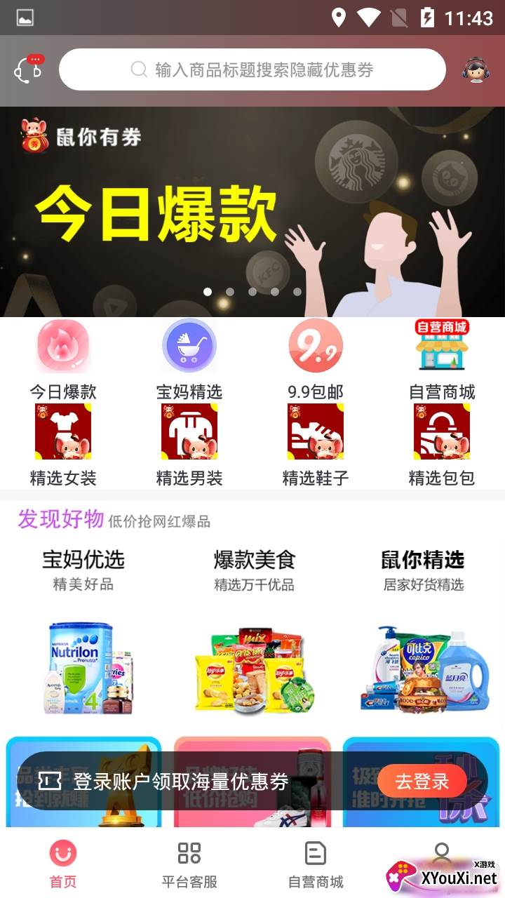 想要精打细算,购物也能玩出新花样?“鼠你有券”海量优惠券福利折扣版,就是你掌上的省钱利器!这款在线商城软件,汇聚了琳琅满目的优质商品,每一件都经过严苛品控,让你买得安心,购得舒心。最令人心动的是,平台慷慨放送海量专属优惠券,动动手指即可轻松领取,搭配限时秒杀的折扣商品和购物返利,每一次消费都是一次愉快的“回血”之旅!