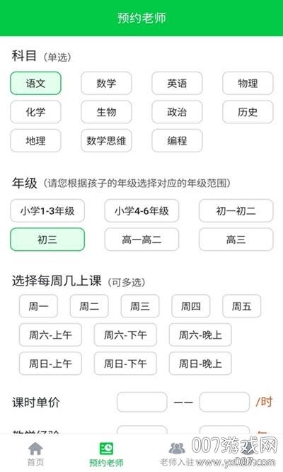 2. 登录您的账户,精准填写学生所在年级与所学学科。