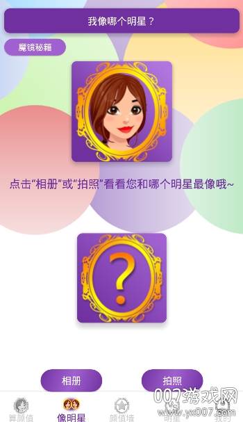 想知道自己的颜值有多能打吗?不妨来试试这款名为“魔镜”的官方APP吧!它就像一位神奇的魔法师,能够瞬间扫描你的容颜,并为你量身定制一份专属的颜值评分。更令人惊喜的是,它还能将你的脸庞与你心中的明星进行一番“隔空对话”,看看你们到底有多大的相似度!无论是选择本地珍藏的照片,还是现场来一张即时抓拍,都能轻松完成扫描,操作过程简直不要太简单。还在等什么?快来下载体验,解锁你的颜值新高度!