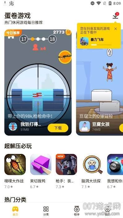 还在为找不到心仪的小游戏而烦恼吗?试试“蛋卷游戏”吧!这款集万千宠爱于一身的手机游戏宝盒,让你告别注册烦恼,下载即玩。抖音、快手上刷到的那些令人欲罢不能的小游戏,在这里都能轻松找到,随时随地开启你的快乐游戏之旅!