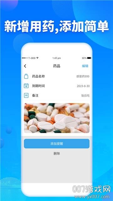 4. 用药细节,尽在掌握:服药原因、总药量、剩余药量等信息,都能轻松设置和管理,让您对自己的用药情况了如指掌。