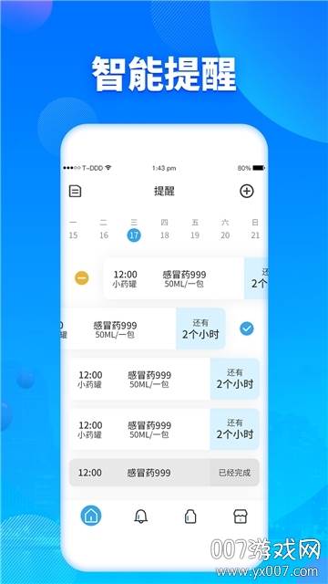 2. 服药状态“一目了然”:贴心的服药状态设置,区分“已服用”、“已错过”、“已跳过”,让您清楚掌握自己的用药进度,告别“哎呀,我吃了吗?”的困扰。
