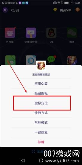 导入成功后,长按《王者荣耀》的图标,你会看到一系列选项,选择“虚拟定位”功能。