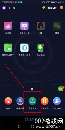 下载完成后,将《王者荣耀》这款游戏导入到X分身应用中。