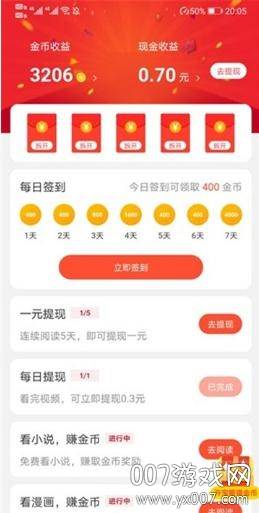 签到、看视频、听音乐、开红包、开宝箱……各类惊喜任务,每日金币拿到手软,让您的收益源源不断。