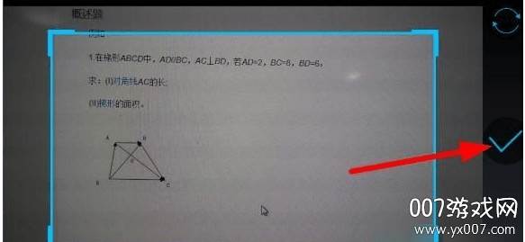 3. 拍好照片后,用蓝色框框住需要辅导的部分,然后点击右侧的“V”确认。