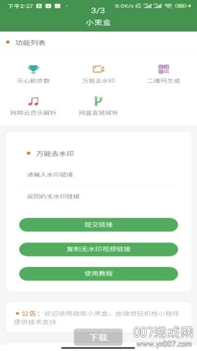 玩机栈手机工具箱,一款小巧玲珑却能量惊人的应用,集万千实用功能于一身。无论是想轻松刷步数,还是想告别视频水印,抑或是生成二维码、解析音乐、畅享VIP视频,它都能信手拈来,而且统统免费,简直是玩机党的福音!