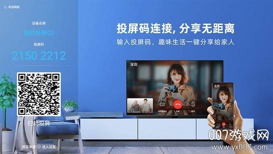 4、电脑互联,内容共享: 不仅支持手机投屏,更能实现电脑画面轻松投至电视,同时兼容移动端超过千款音视频APP的推送投屏,内容共享无界限。
