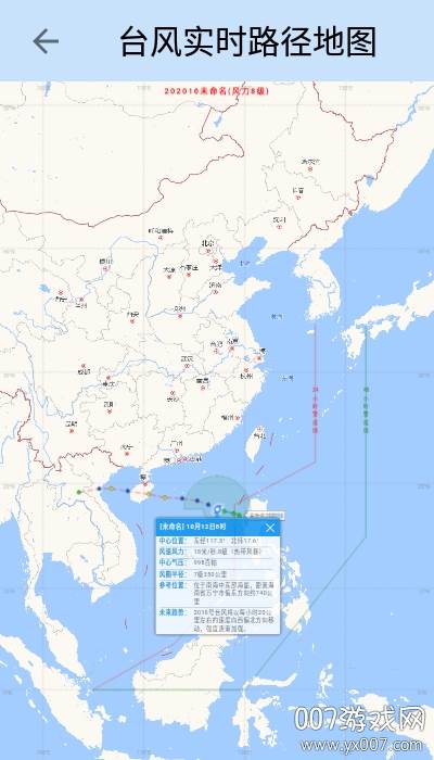 2、台风实时追踪:动态展示台风路径,回溯历史台风轨迹,助你提前预警,规避风险。