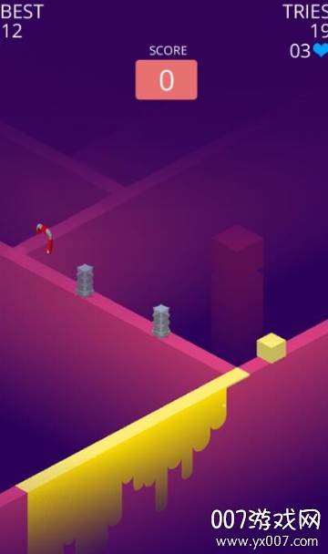 《喷射之路》是一款节奏感十足、令人欲罢不能的反应类游戏。玩家需要以闪电般的反应,引导色块穿梭于纵横交错的三维迷宫之中。每一次转向、每一次跳跃,都是为了避开重重障碍,尽可能地延长生存时间。过早或过晚的操作,都可能导致色块功败垂成。因此,每一次转向的时机都必须拿捏得恰到好处,方能确保一路畅通无阻。