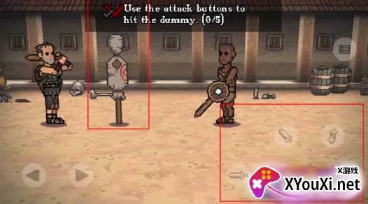 4. 接下来是实战演练。运用右侧按钮,挥舞利剑攻击眼前的木偶人。完成此番攻击,新手教程便告一段落。