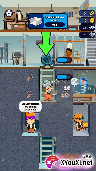 《放置越狱》是一款令人沉迷的放置类游戏,它将模拟经营与闯关冒险巧妙融合,为你带来一场动感十足的越狱终极之旅。在这里,你将化身一名机智的囚犯,目标只有一个:通过破坏、挖掘、工具升级乃至召集团队,最终成功逃脱监狱的束缚。准备好迎接这场挑战了吗?