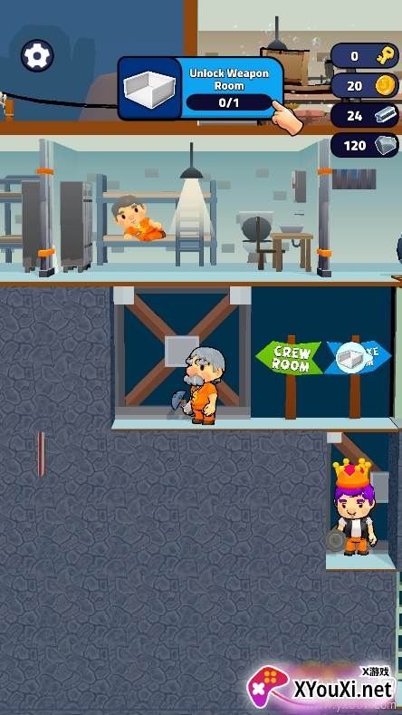 游戏的核心玩法聚焦于越狱本身。你将手持最基础的镐头和初始工具,巧妙地破坏墙体,挖掘隐蔽的隧道,只为寻觅那条通往自由的康庄大道。每一次挖掘,每一次破坏,都需要你精心规划方向与顺序,确保能从森严的监狱中全身而退。