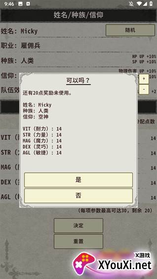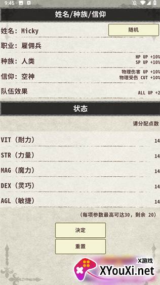 语言设置完毕后,轻触屏幕即可开始游戏。游戏内设有一个便捷的内置菜单,允许你自由调整角色的各项属性,如耐力、力量、魔力、灵巧等,为你的冒险之旅奠定坚实基础。