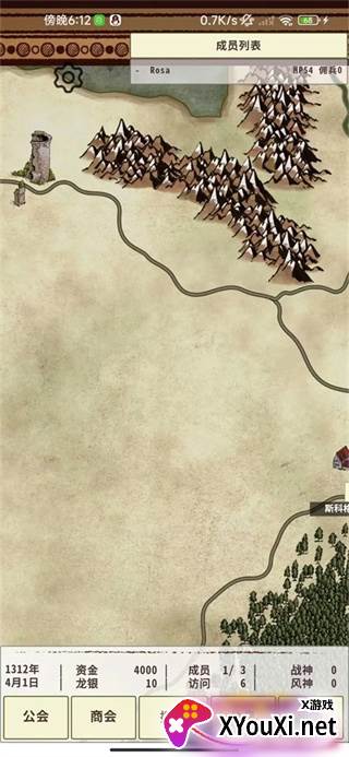 在斯科格村,你可以参与战斗、访问公会、前往商会、进行探险、安排休息或进行设置。公会功能尤为重要,在此你可以查看角色信息、成员列表以及进行队伍编组。