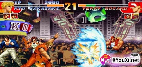 – 草薙京实力超群,可实现大招连击直至对手倒下。