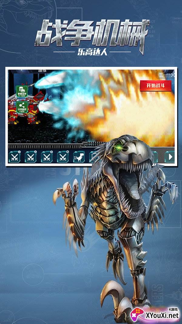 准备好迎接一场视觉与操作的双重盛宴了吗?《战争机械乐高达人》不仅为您奉上琳琅满目的恐龙机甲,更精心设计了海量炫酷技能与震撼特效,让每一场战斗都火花四溅。游戏操作简便易懂,无论您是资深玩家还是新手小白,都能迅速沉浸其中,尽享格斗乐趣。