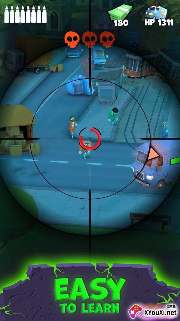 化身远距离守护者,在黑夜降临之时,你将登上高处,用手中的狙击枪精准狙杀游荡在小镇中的僵尸。每一次精准的射击,不仅能为城镇居民带来安全,更能为你赢得丰厚的报酬。积攒的酬劳可以用来购买更多子弹和关键道具,让你能够持续不断地守护这片土地。游戏设有丰富多样的关卡和模式,让你尽享刺激震撼的射击体验,何不即刻启程,亲身感受这场生死较量?