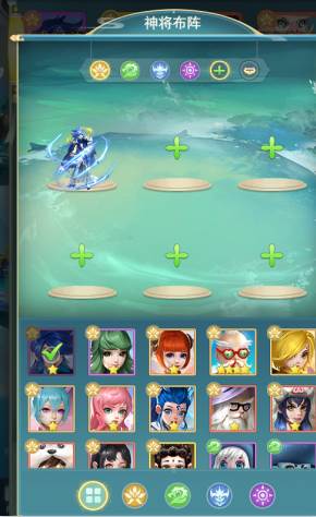 点击“神将”即可进入神将界面。神将分为仙、妖、鬼、神四大种族,并拥有SSSR、SSR、VR、SR等不同等级。