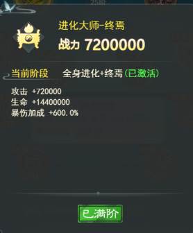 3. 当装备进化达到一定等级时,可激活“进化大师”属性,进一步提升生命、攻击和暴击伤害。