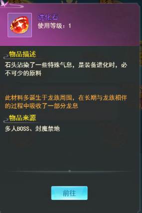 4. 装备进化所需的材料“进化石”,主要通过参与多人BOSS和封魔禁地活动获得。
