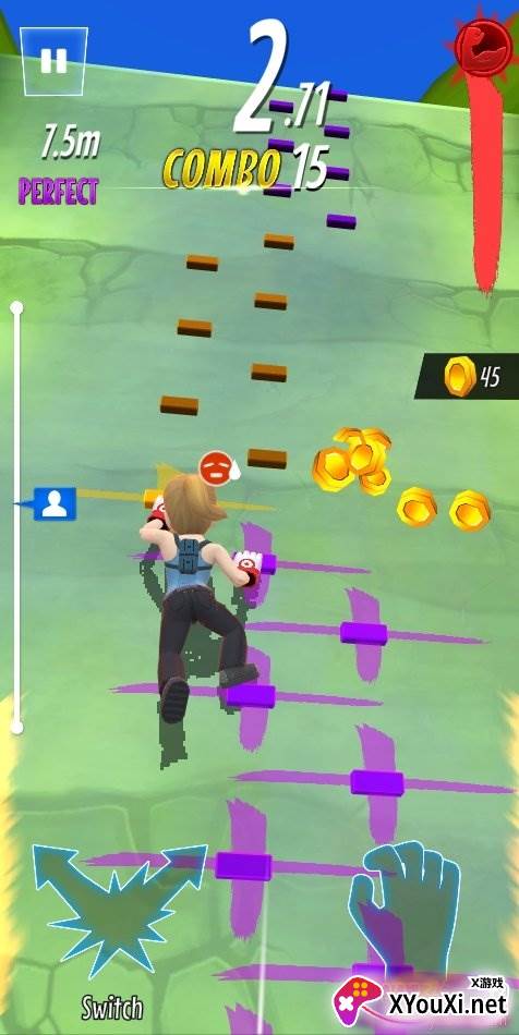 指尖操控,节奏制胜: 简单易上手的操作机制,让任何人都能快速沉浸其中。精准把握攀登时机,每一次触屏都决定着你的前进速度。配合悦耳的背景音乐,更能让你心无旁骛,享受攀登的乐趣。