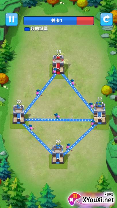1、你的核心任务是通过巧妙利用资源,例如树木与各种道具,来巩固并升级你现有的地面防御塔,使其威力倍增。