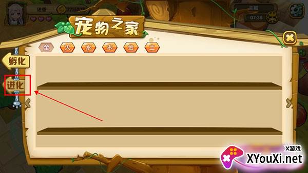 2. 进入“宠物之家”界面后,你会看到“孵化”与“进化”两大选项,请选择“进化”。