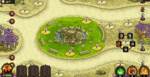 4. 进入第三关,路口增至两个。此时,如何高效地摆放炮塔,最大化利用资源,便成为获胜的关键。虽然难度不大,但仍需谨慎。在下方路口的转弯处建造一个兵工厂,同时在地图上巫师塔的位置也建造一个兵工厂。随后,在上方和下方各选择两个有利位置,部署炮塔形成集群攻击。需要注意的是,虽然可以建造多个炮塔,但务必优先升级其中一个。随着游戏的深入,别忘了升级兵工厂。在最终面对大Boss时,若感到难以招架,别忘了使用“火陨石”这一强力技能。