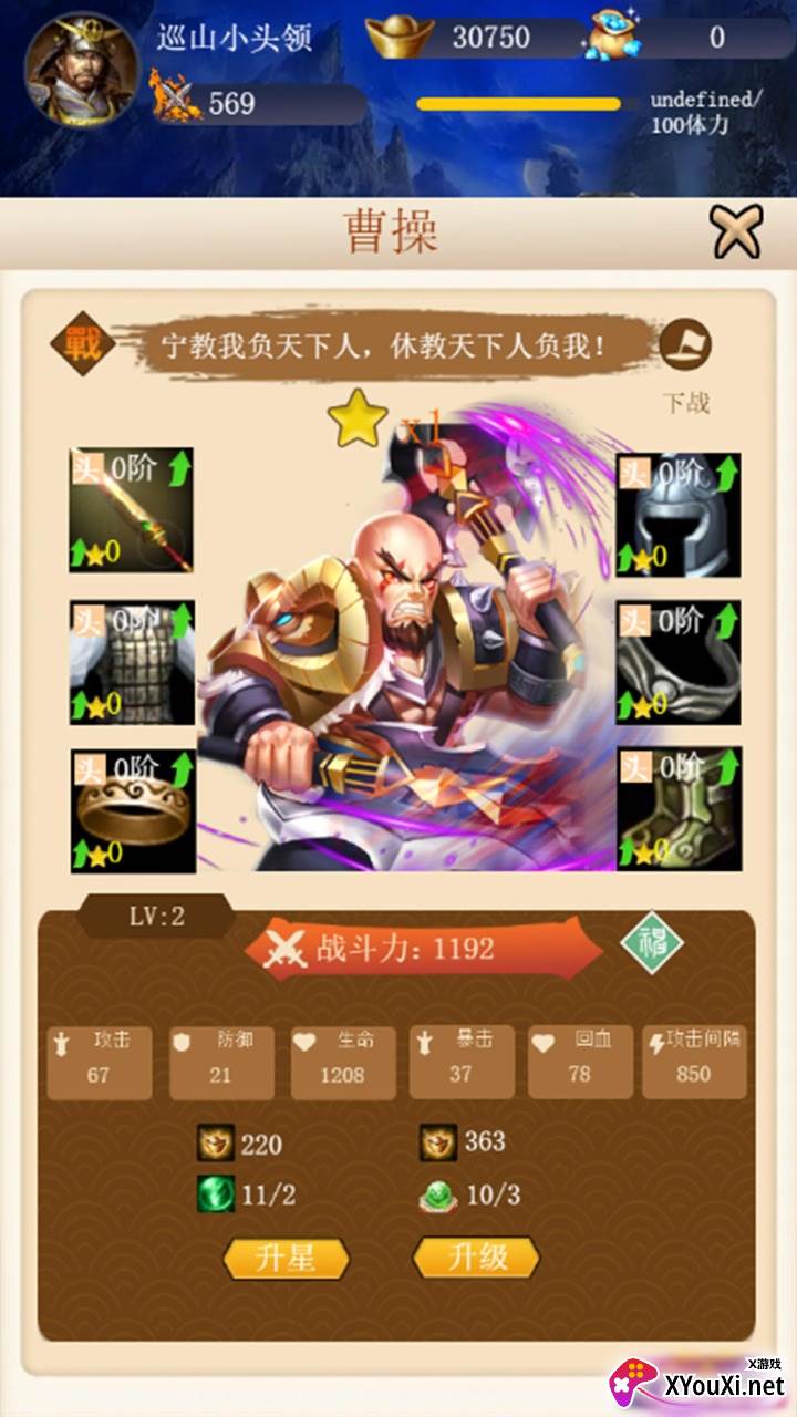 《去三国找大哥》是一款别具匠心的三国题材策略养成手游,以其精美的画面呈现,邀您重温那段波澜壮阔的历史。游戏中,众多耳熟能详的三国名将悉数登场,每位英雄都身怀绝技、属性各异。玩家的任务便是运筹帷幄,巧妙搭配,组建一支令人生畏的强大军团。