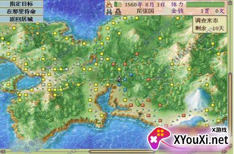 2. 自由市场:习得“德政令”技能后,向织田信长进献礼物(若信长采纳,则会下令视察领地)。