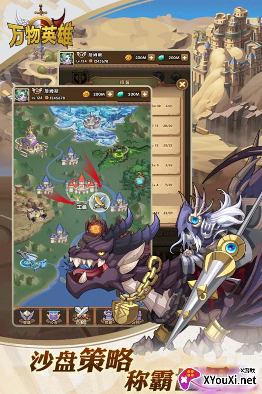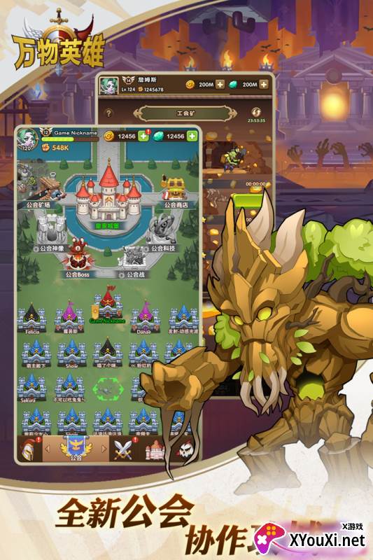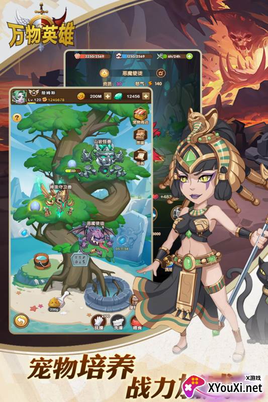 《万物英雄》是一款以西方中世纪神话为蓝本的欧式卡通风格放置卡牌RPG。游戏巧妙融合了六大阵营、三百余张特色卡牌的养成,更有百余种宠物等待你的悉心经营。在此基础上,游戏还加入了公会PVE、PVP、GVG等轻度塔防策略玩法,为玩家带来一场别开生面的游戏体验。
