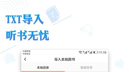 4. **TXT导入,随心听:** 支持导入手机本地下载的电子书,自由选择想听的内容,无忧畅听。