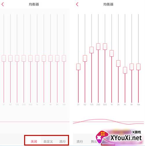 均衡器默认关闭,开启后,你可以根据个人喜好进行自定义调节,亦可选择预设的风格,如流行、舞曲、蓝调、爵士等,让音乐更添色彩。