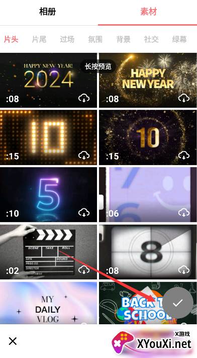 3. 选择您的素材或相册中的视频,即可开启精彩剪辑。