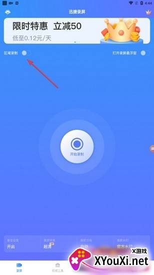 1. 首先,轻点界面左上角的“区域录制”按钮,将其激活。