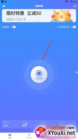 2. 接着,点击屏幕中央的录制按钮,启动你的屏幕录制。