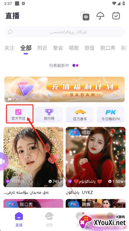 Badam Live直播App还会不定期为你奉上精心策划的歌唱、舞蹈、茶话会等精彩节目,让你有机会与主播进行零距离的实时互动交流。同时,它为你搭建了一个展示才艺的广阔舞台,如果你对自己的才华充满自信,不妨在首页点击“官方节目”板块,查看详细的直播时间安排,抓住属于你的闪耀时刻!