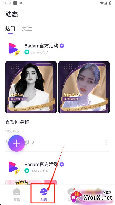 4、点击“动态”板块,您可以在这里浏览您所关注账号发布的最新动态。
