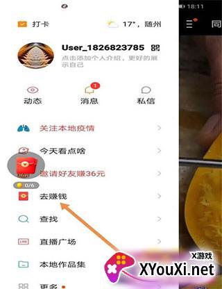 2. 在界面中找到“去赚钱”的入口。