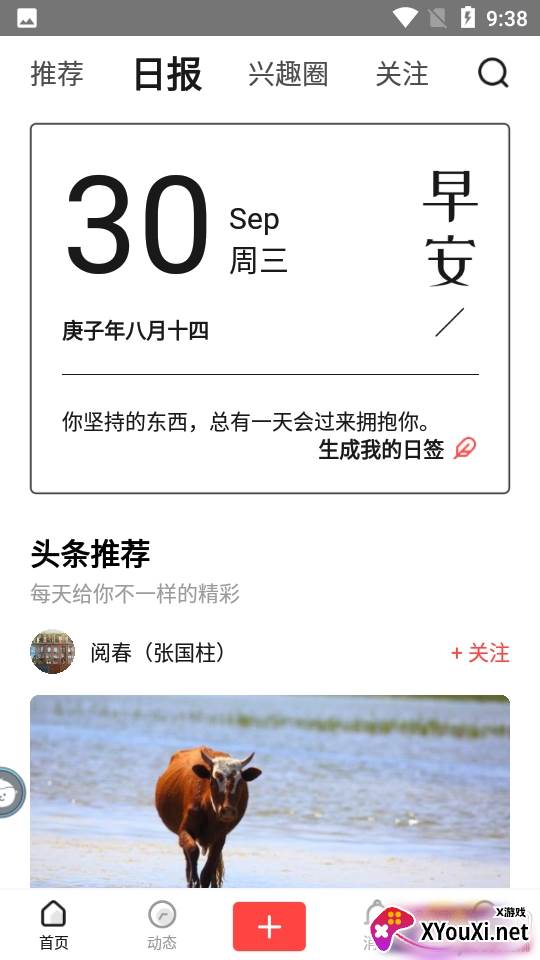 2、日报改版升级,品质之选:全新设计的日报,只精选品质卓越的作品。新增“日签”功能,每日精选一张壁纸照片与一段感性文字;更有“早晚安打卡”,为您的生活注入仪式感!