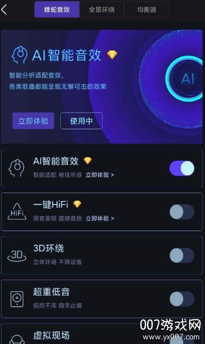酷我PC端与移动端均搭载“蝰蛇音效”功能。该功能包含“3D美音”、“超重低音”、“虚拟现场”和“纯净人声”四大场景模式。不同的音效设置能最大化展现歌曲的听觉效果。“3D美音”借助顶级渲染技术与云服务,为每首歌曲匹配最适宜的环绕立体声场。“超重低音”通过先进的低音增强技术,确保低频清晰可辨,并具备智能防破音功能,让每个音符都充满力量。“虚拟现场”则运用全息声场调校技术,逼真还原演唱会现场氛围,让您仿佛置身其中。而“纯净人声”则凭借独特的人声解析能力,使歌声更加清晰通透,触及音乐的灵魂。