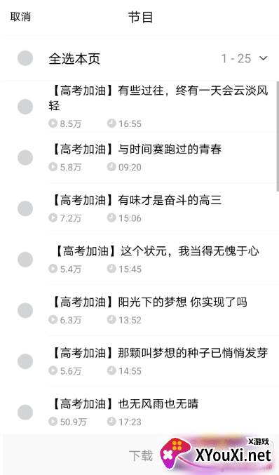 4. 您将看到丰富的节目列表。选择您正在收听的节目,然后点击下载。