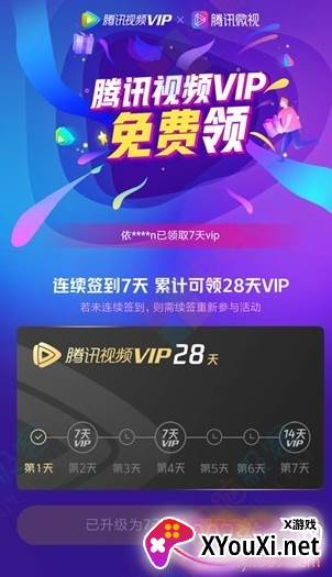 - 连续签到7天,即可获得8天腾讯视频会员。