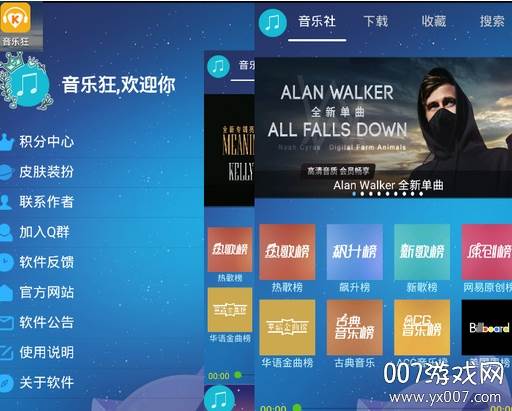 此外,APP还推出了“皮肤中心”和“积分中心”,用户可以通过每日签到和分享活动轻松积累积分,兑换精美皮肤,甚至参与未来的奖励计划,让您的听歌体验更添乐趣与个性。